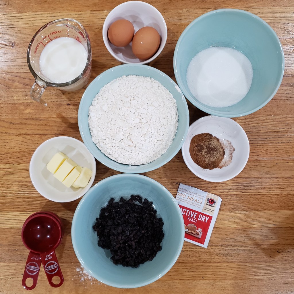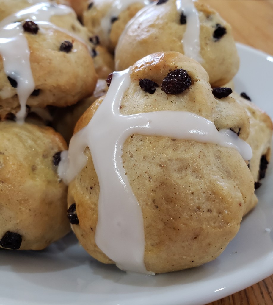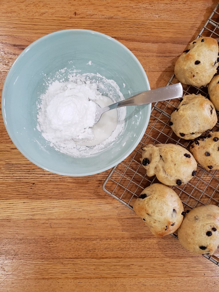 Hopefully, by now you’ve listened to Episode 1 or at least read our recap of it, and you’re ready to try making Hot Cross Buns for yourself. There are a ton of recipes out there–including ones that contain mashed potatoes! Or powdered milk! Most of these were a product of their times–when certain ingredients might be sparse or hard to come by. For this one, we adapted a few modern recipes for our favorite.