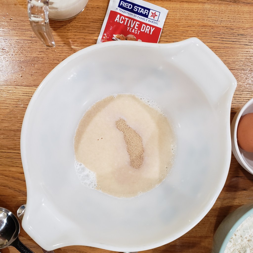 Step 1: Proof the Yeast. Stir together 1/4 of the warm milk, 1 tsp of sugar, and the package of yeast. Let it sit for 5-10 minutes and watch for it to froth.