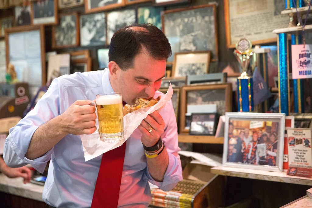 Pres. George & Barbara Bush patronizing food stand during campaign stop at state fair. (Photo by Dirck Halstead/The LIFE Images Collection/Getty Images)