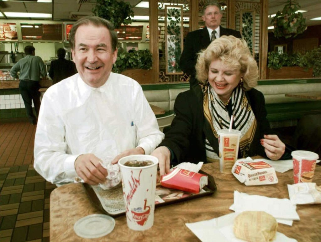 GREENWOOD, : Republican presidential candidate Pat Buchanan and wife Shelley eat lunch at the local McDonald’s restaurant in Greenwood, South Carolina, 28 February during a break while driving across the state for campaign stops. Buchanan is campaigning for the South Carolina primary to be held 02 March. (ELECTRONIC IMAGE) AFP PHOTO/Chris WILKINS (Photo credit should read CHRIS WILKINS/AFP/Getty Images)