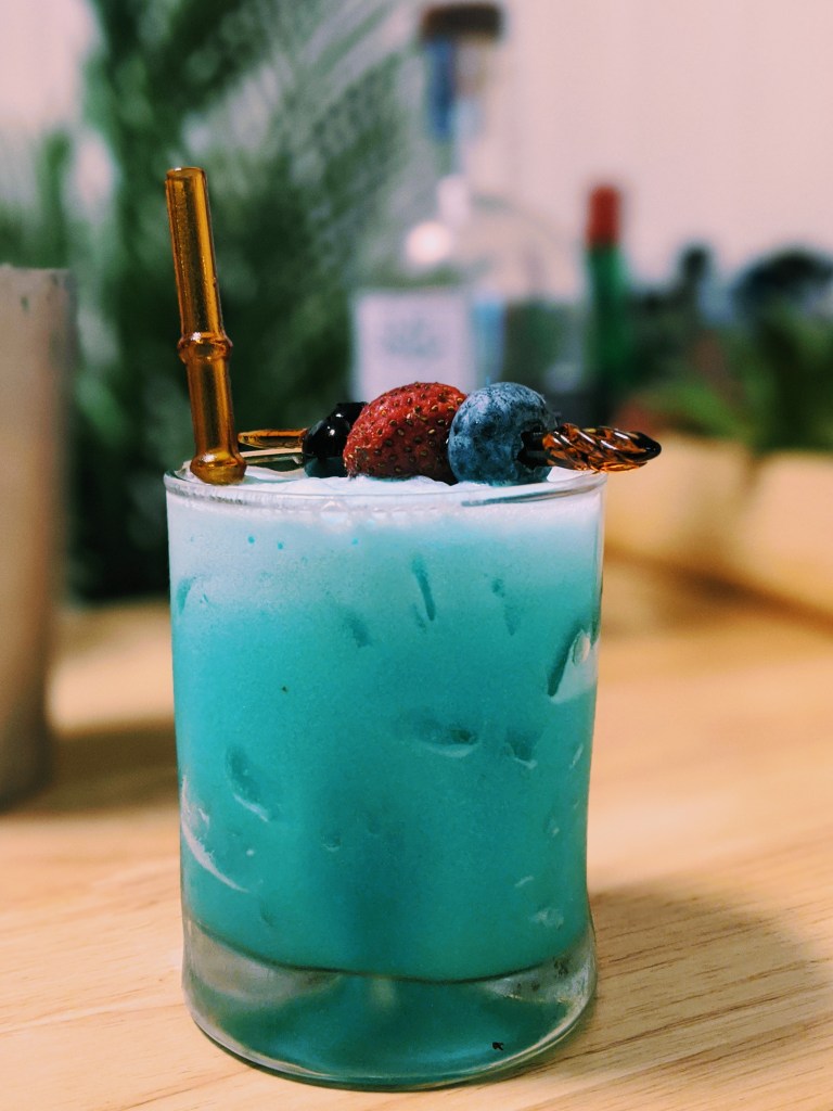 The Blue Hawaiian (aka the Swimming Pool) is the featured cocktail of Episode 34: Some f’ckn idiot named Wigglesworth. It is a glorified Piña colada with blue curacao added and it’s delish.