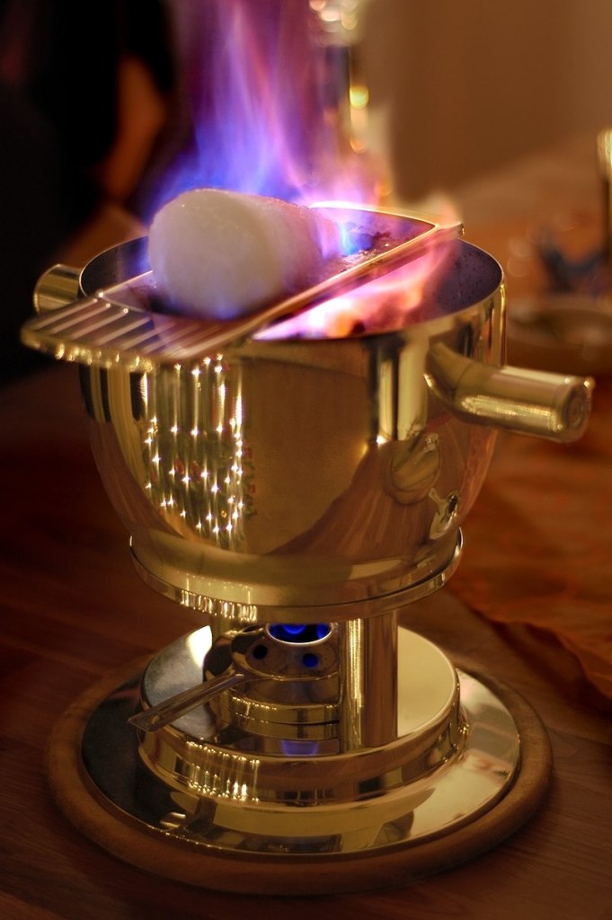 - Soak the sugar loaf with rum and light up the alcohol. The sugar will melt and drip into the wine. Add rum (little by little) to keep the fire burning until the sugar loaf is used up.