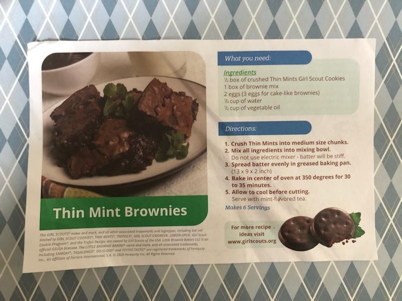 This episode’s recipe was Thin Mint Brownies!