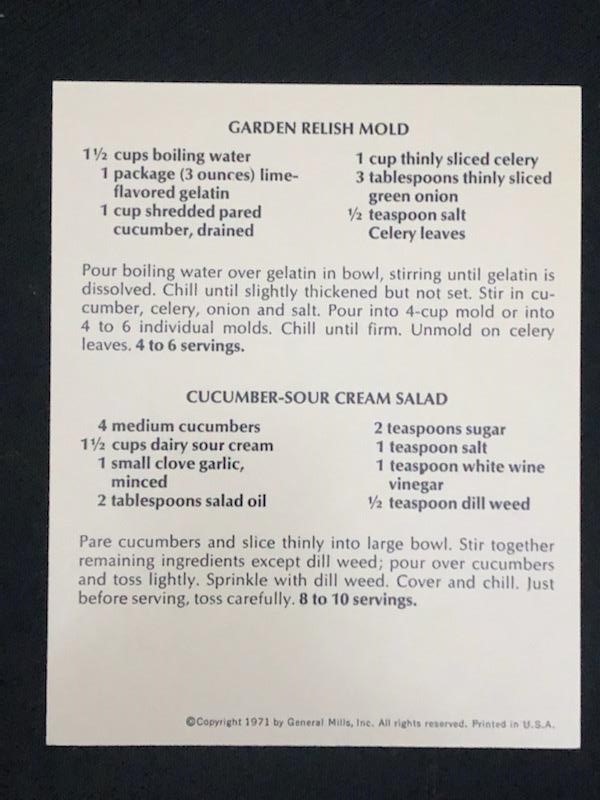 This episode’s recipe is the Cucumber Cool Salad (which includes both onions and lime Jell-O) from Betty Crocker’s Box. Find this recipe and cocktail instructions in the episode notes on DrunkDish.com.